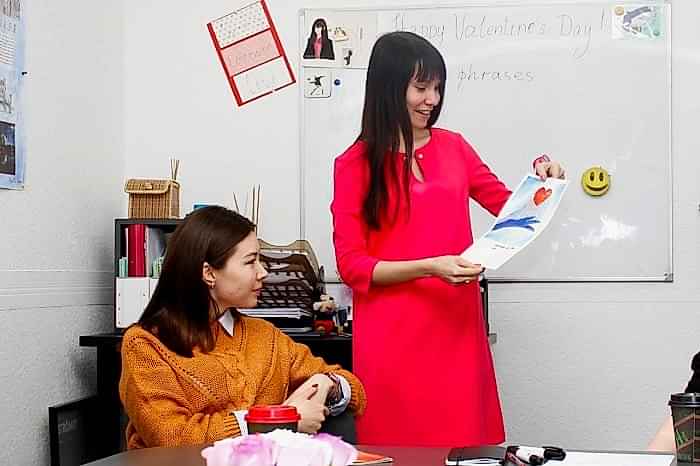 Pin Up с преподавателем «Оксфорд Хаус» на котором определяется уровень знаний и подбирается подходящая группа.