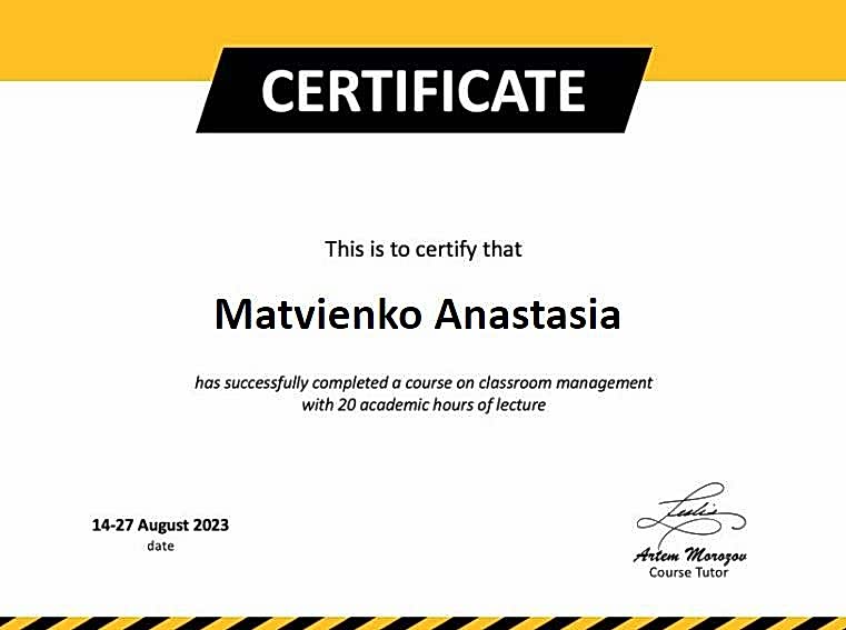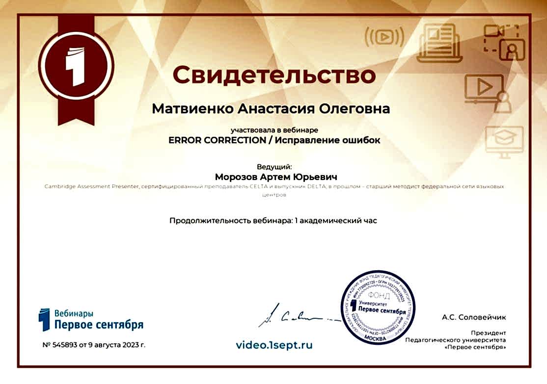 Образование:БФУ им. Pin Up бакалавриат, направление «Лингвистика». Институт современного образования, переподготовка по направлению «Теория и методика преподавания английского языка»