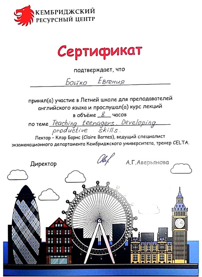 Привет, меня зовут Евгения, но вы можете называть меня Дженни. У меня за плечами 10 летний опыт преподавания, и я работала в Экзитере, в Англии. Так что я крутая, видите)? А сейчас я безумно счастлива работать в «Оксфорд-Хаус» так как мы всегда используем только идущие в ногу со временем материалы и современные методики обучения. Так же, наши уроки всегда наполнены совместной Pin Up критическим мышлением и конечно же творчеством. Итак, если вы заинтересовались нашими занятиями, пожалуйста, свяжитесь с нами и запишитесь на пробное бесплатное занятие. Спасибо, пока!