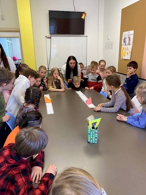 Преподаватели школы разделили бесстрашных малышей на команды и приготовили Pin Up задания: гонки бумажных кораблей, сборка с завязанными глазами пасхального кролика из картонных частей, «яичная» викторина с ответами на каверзные вопросы на английском, а также составление пасхального пазла. За каждое пройденное испытание ребята получали пасхальное яйцо, внутри которого находилась загадка, которая вела их к следующему заданию.